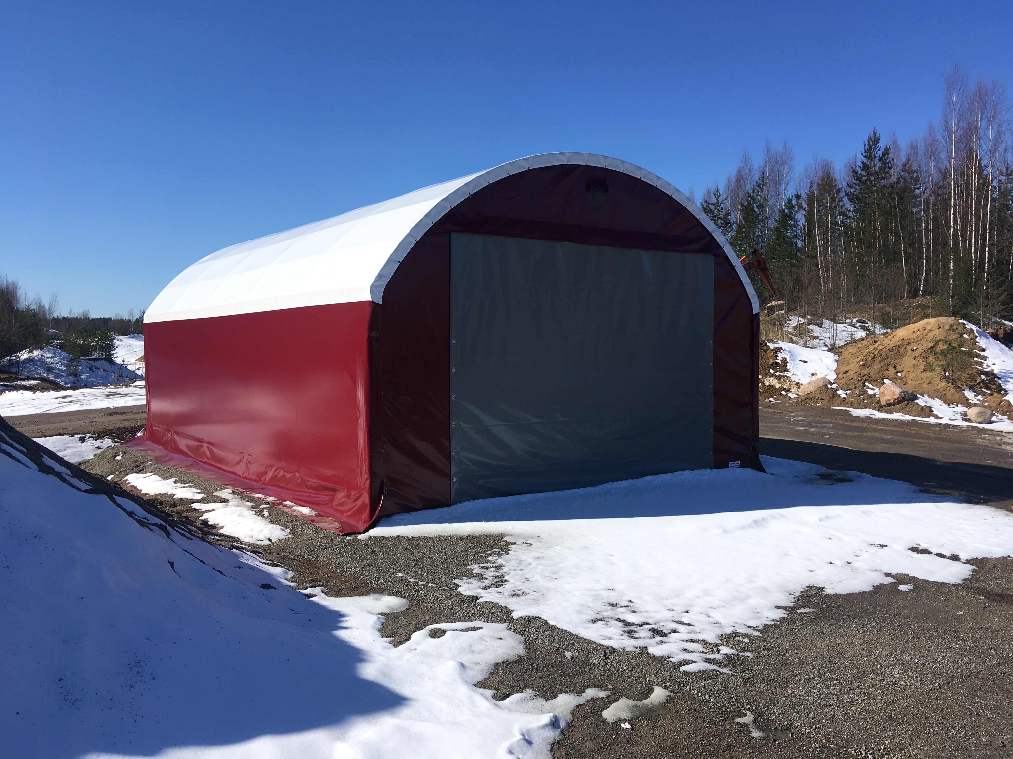 Rakenna tästäKaikki kuvat halleista ovat aitoja, pääsosin meidän pystyttämia pressuhalleja. Ei tekoälyä tai radikaalia muokkausta.