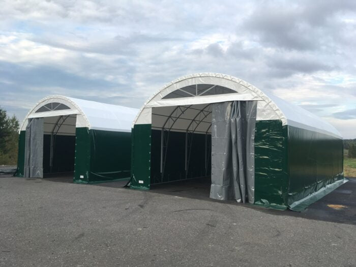 Hallit valmistetaan tilausjärjestyksessä ja toimitusaika vaihtelee hieman sesonkien mukaan. Syysaikaan joudumme valitettavasti varautumaan jopa kahden kuukauden tuotantoaikaan. Hiljasempaan aikaan toimitusaika vaihtelee 4-6 vikkon välillä. Tietysti hieman hallin koosta riippuen.